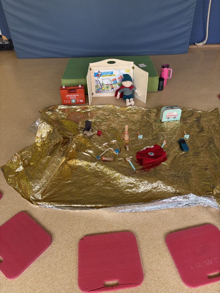 Ein besonderes Highlight: Die Kinder dürfen ihre eigenen Kuscheltiere oder Puppen mitbringen und das Gelernte direkt praktisch anwenden. So wird aus Theorie echtes Handeln – kindgerecht, einfühlsam und mit viel Spaß.